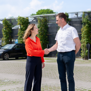 Bedenker van Het ei van Columbus-event, Monique Juffermans: “Bedrijven checken in met een probleem en checken uit met een innovatieve oplossing. Ze mogen alleen deelnemen als ze ook een wereldprobleem oplossen. Denk aan een bal voor kinderen in ontwikkelingslanden die geen elektriciteit hebben. Als ze voetballen laadt de bal op en aan het einde van de dag geeft hij licht om hun huiswerk mee te maken. Als je dan toch voetballen produceert, waarom dan niet meteen een wereldprobleem oplossen?!”