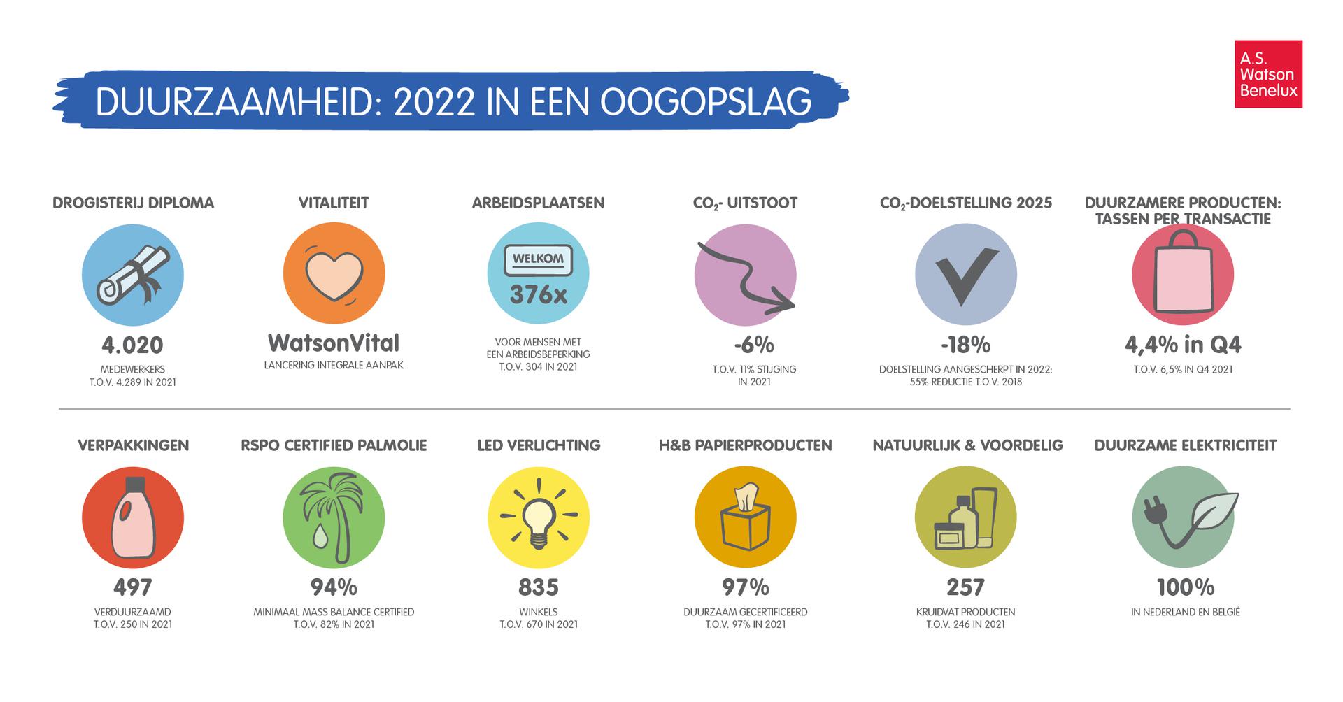 A.S. Watson Health & Beauty Benelux – het bedrijf achter Kruidvat, Trekpleister en Prijsmepper- heeft afgelopen jaar weer veel stappen gezet om de bedrijfsvoering verder te verduurzamen. Zo is het assortiment Kruidvat Natures flink uitgebreid en daalde de CO2-uitstoot met 6 procent ten opzichte van een jaar eerder. De komende jaren blijft de drogisterijketen inzetten op het bereikbaar maken van duurzamere producten voor iedereen en het verkleinen van de impact op het klimaat. Dit en meer staat in het vandaag gepubliceerde Duurzaamheidsverslag 2022.