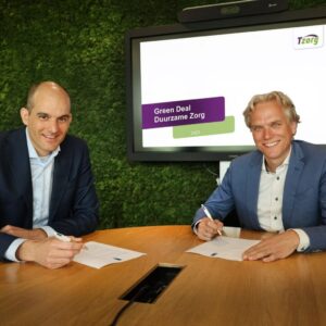 Niels van Geenhuizen nam de deelnemers mee in duurzaamheidsaanpak van CSU, Tzorg en Zizo. Met 28.000 werknemers één van de grootste schoonmaakbedrijven van Nederland. ‘Fris in je Werk’ is een succesvolle aanpak die werknemers mentaal, fysiek en financieel steunt. Zo is binnen 24 uur een fysiotherapeut beschikbaar bij fysieke klachten en wordt direct een financieel coach ingeschakeld bij loonbeslag. CSU integreert ecologische, sociale en governance factoren in het dagelijks werk. Ze heeft geen aparte duurzaamheidsafdeling maar klimaatpositiviteit is een verantwoordelijkheid van iedereen. Van hoog tot laag in de organisatie. Met meet- en stuurinformatie voor zowel de klant als ook per afdeling. Reduceren is meten, weten en communiceren aldus Van Geenhuizen.