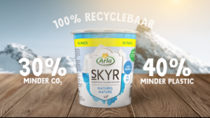 Bij Arla Foods staat de creatie van nieuwe milieuvriendelijke verpakkingen die ook voldoen aan de eisen op het gebied van voedselveiligheid en functionaliteit centraal. Daarom werkt het zuivelbedrijf continu aan de verbetering en verduurzaming van verpakkingen. De grootverpakking skyr is de nieuwste duurzame verpakking van Arla Foods. “We hebben het plasticgebruik tot een minimum beperkt en het gebruik van fossiele grondstoffen verminderd. Dit betekent dat we in samenwerking met onze consumenten de CO2-uitstoot met 30% kunnen verminderen ten opzichte van de vorige skyr-beker” vertelt Lise Berg Kildemark, Directeur duurzame verpakkingen bij Arla Foods.