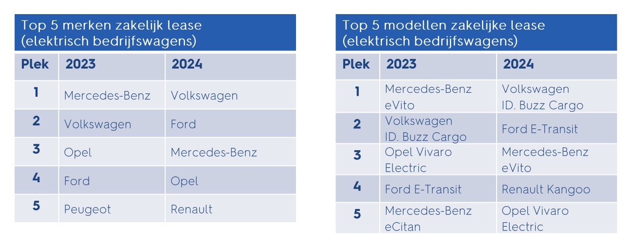 De Volkswagen ID. Buzz stijgt naar de eerste plaats in de ranglijst van elektrische bedrijfswagens. Drie nieuwe modellen betreden de top 10, waaronder de Mercedes-Benz eSprinter op de 8ste plek. Volkswagen klimt van de tweede naar de eerste plek, wat te danken is aan de populariteit van de ID. Buzz.