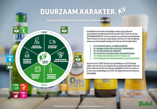 Benieuwd naar de resultaten en activiteiten van Grolsch op het gebied van duurzaam en verantwoord ondernemen in 2021, of naar de doelstellingen voor 2022? Bekijk dan het online jaaroverzicht 2021.
