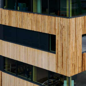 The Urban Woods Delft tonen de hoogste houtbouw in Nederland. Zelfs voor de liftschacht en voor de stabiliteit is hout gebruikt – geen beton. 85 procent van de materialen is herbruikbaar. ‘Dit project bewijst dat we de CO₂-uitstoot drastisch kunnen verminderen’, vertelt Meint Smith, ontwerper bij advies- en ingenieursorganisatie Arcadis, constructeur van het project. ‘Dankzij nieuwe technieken zoals bouwplaten van gerecycled hout en het slimme stabiliteitssysteem, is de ecologische voetafdruk minimaal. Toch kun je de hoogte in en blijft de indeling 100 procent flexibel. Tegelijkertijd verbeter je de woonkwaliteit. In hout wonen is aantoonbaar rustgevend en gezond.’