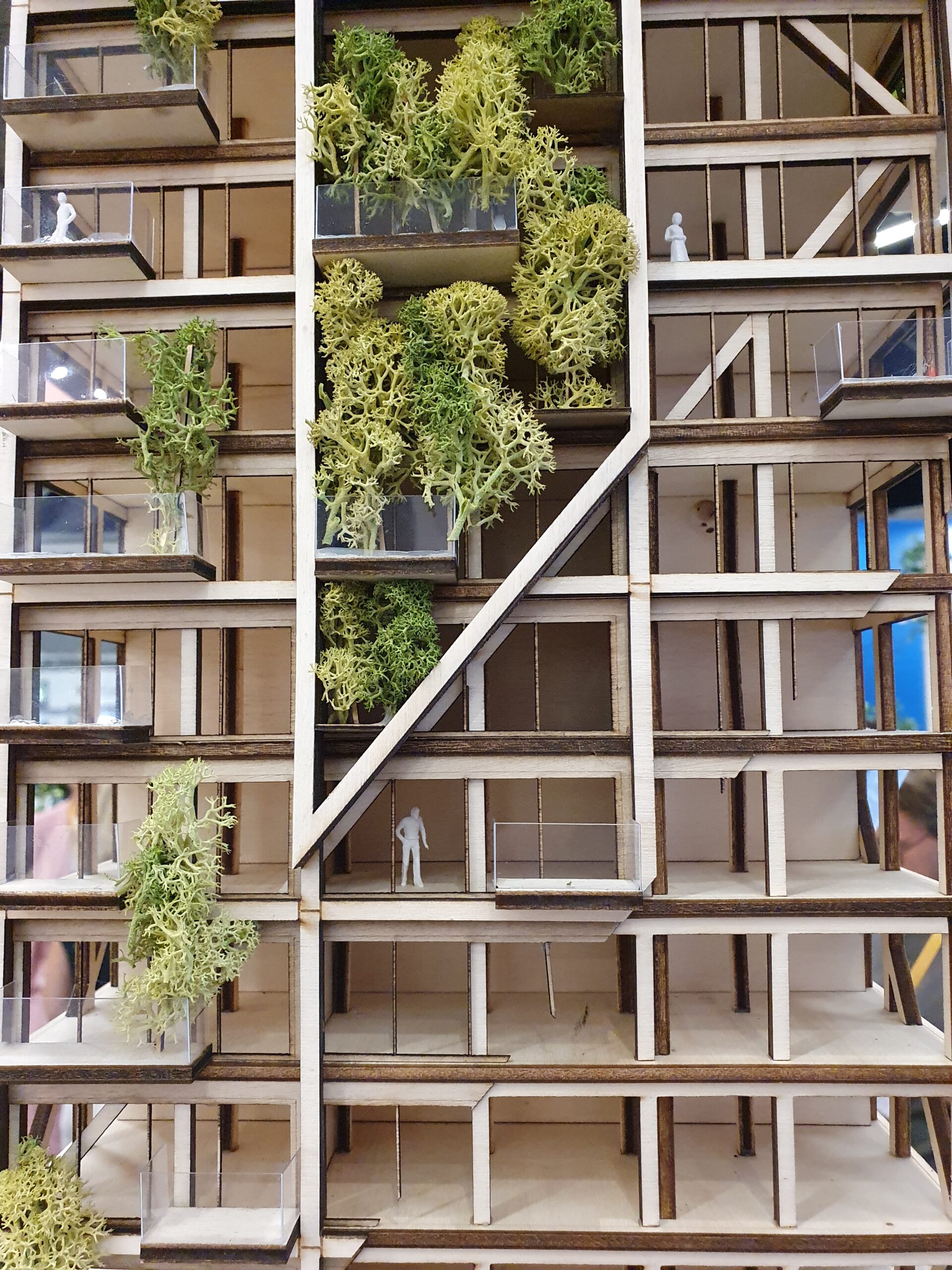 ‘Dankzij onze nieuwe aanpak kun je met hout álle denkbare gebouwen maken. Constructies zijn eenvoudig en snel te repliceren. Eindelijk: uitrolbare biobased bouw tot wel vijftien lagen’, vertelt Tim Vermeend, oprichter van The Urban Woods, vol enthousiasme. ‘We maken de gevel constructief. Zo kunnen we alle krachtenschema’s kwijt in de balken en wordt beton steeds meer overbodig. Het modulaire systeem is perfect voor verschillende locaties en toepassingen. Het is flexibel, functioneel en bovenal: eerlijk.’ En dan, met knipoog; ‘Oók voor mensen.”