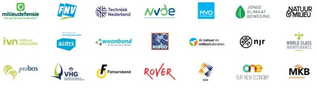 De agenda wordt gesteund door: Milieudefensie, FNV, Techniek Nederland, Nederlandse Vereniging voor Duurzame Energie (NVDE), MVO Nederland, Jonge Klimaatbeweging, Natuur & Milieu, IVN Natuureducatie, Aedes, Woonbond, Nibud, Natuur en Milieufederaties, Nationale Jeugdraad, Fietsersbond, Reizigersvereniging Rover, Stichting Probos, Koninklijke Vereniging van Hoveniers en Groenvoorzieners, Federatie Nederlandse Rubber– en Kunststofindustrie, World Class Maintenance en MKB Amsterdam. De Eerlijke Klimaatagenda wordt tevens ondersteund door diverse hoogleraren en bestuurders waaronder Alexander Rinnooy Kan, Barbara Baarsma, Herman Wijffels, Thalita Muusse, Winnie Sorgdrager en Amma Assante.