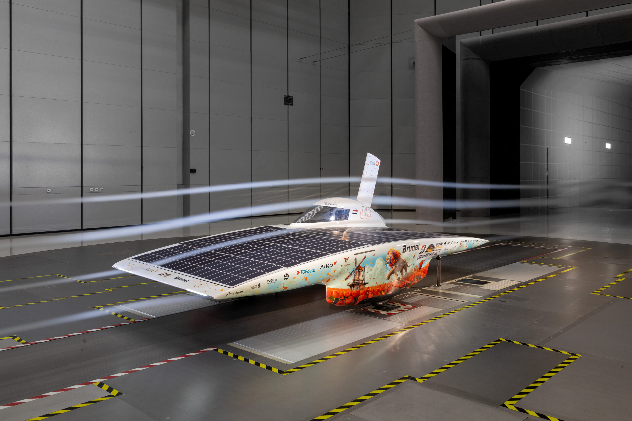 Nog niet eerder werd een zonneauto gebouwd met zowel een asymmetrisch catamaranontwerp als een vin. Om de vin optimaal te benutten, was een windtunneltest nodig. Voor het eerst sinds 2011 testte het team weer met een auto op ware grootte.