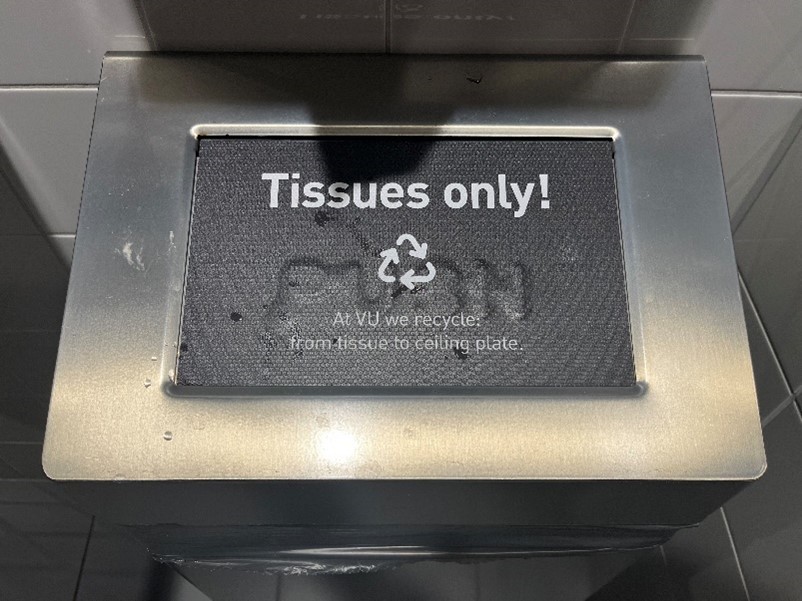 De maatregel om papieren handdoekjes in te gaan zamelen voor recycling was een “no-brainer” volgens Adil. “We zijn direct gestart met het opzetten van een pilot omdat er een heel duidelijke plek is waar de meeste tissues worden gedeponeerd als afval: in de sanitaire ruimtes. We kozen voor een toiletruimte in een medewerkersgebied en een toiletruimte in een openbaar studiegebied om de praktijk van het inzamelen te testen.”