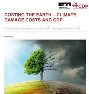 A first-of-its-kind report released today by CDP, a non-profit which runs the global environmental disclosure platform, and University College London (UCL) has modelled the mean damage costs of ‘business as usual’ action on climate change at $5.4 trillion a year by 2070 and $31 trillion a year by 2200. Accounting for these damages will lead to a 10% reduction in GDP growth rate by 2050 and 25% by 2100.