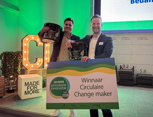 Vandaag, maandag 2 maart, zijn de winnaars bekend gemaakt van de Gelderse Circulaire Innovatie Top 2026 tijdens een event in The AwareHouse bij Interface te Scherpenzeel. De jury heeft de tot winnaars uitgeroepen: Circle Solution (Circulaire Start-Up), Inexeon (Circulaire Change Maker) en Koffiebranderij Peeze (Circulaire Ketensamenwerking). Gedeputeerde Helga Witjes van Provincie Gelderland maakte de winnaars bekend.