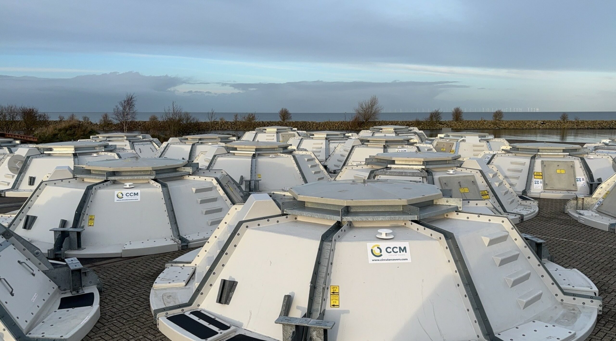 Gepubliceerd 14 februari 2025 op 2560 × 1420 in RWE geeft monopile funderingsafdekkingen van Nederlandse bedrijf Circular Covers een nieuw leven