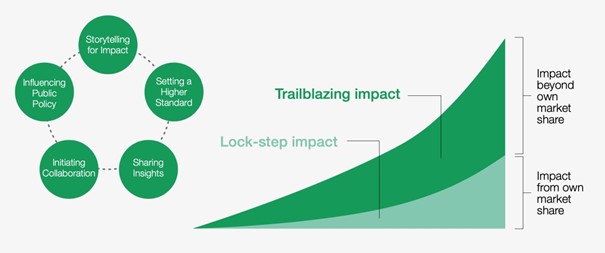 The research shows that impact-oriented ventures have a 43% higher chance of scaling up than purely commercial companies. Some of those ambitious impact scale-ups actively aim to change entire industries. In doing so, they become what we call trailblazers.