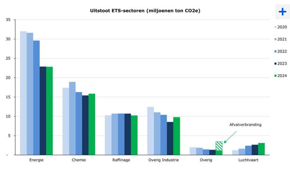 Er zijn 2 sectoren die dit jaar voor het eerst deelnemen aan het EU ETS. De eerste betreft de afvalverbrandingsinstallaties. Dat zijn er 12 in Nederland, die samen goed zijn voor 2,3 miljoen ton CO2.