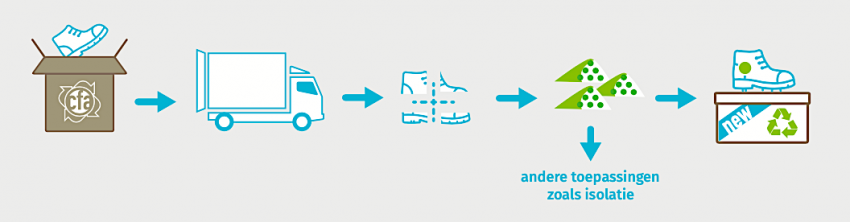 Volle boxen worden door de CFA opgehaald en naar een sorteercentrum gebracht. Daar worden de schoenen gesorteerd en ontmanteld. Van de onderdelen worden monomaterialen gemaakt die bestaan uit één materiaalsoort voor de productie van nieuwe producten. De initiatiefnemers streven ernaar om ook in het ontwerpproces van nieuwe schoenen zoveel mogelijk monomaterialen te gebruiken.