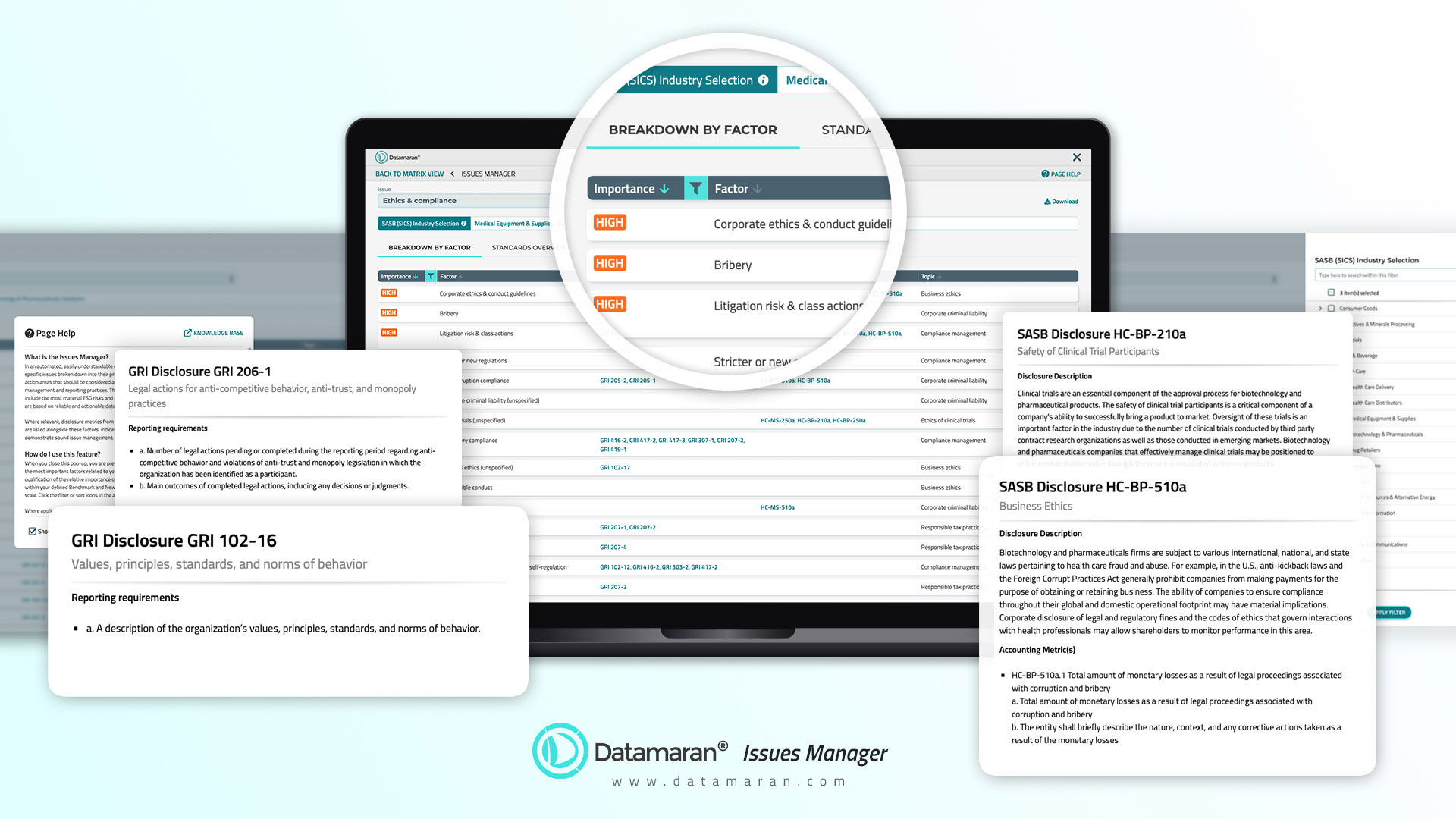 Datamaran enables a fully automated and digitized approach to monitoring emerging and ESG issues, tailored to your business and value chain. It offers real-time analytics on strategic, regulatory and reputational risks to strengthen decision-making – with the power of AI and Big Data.