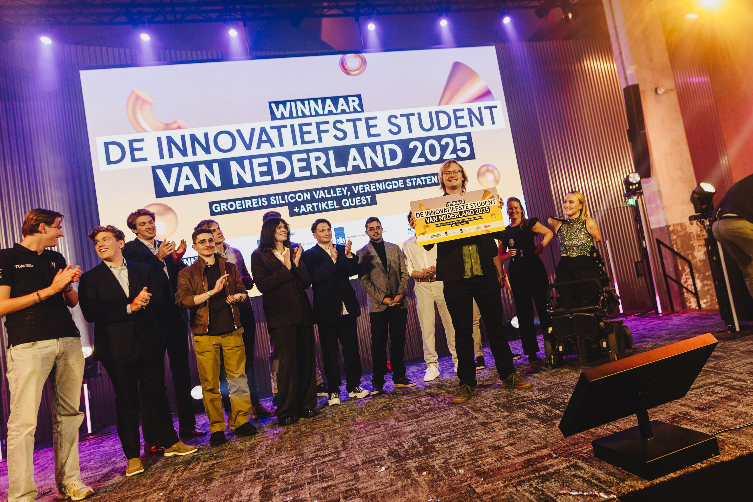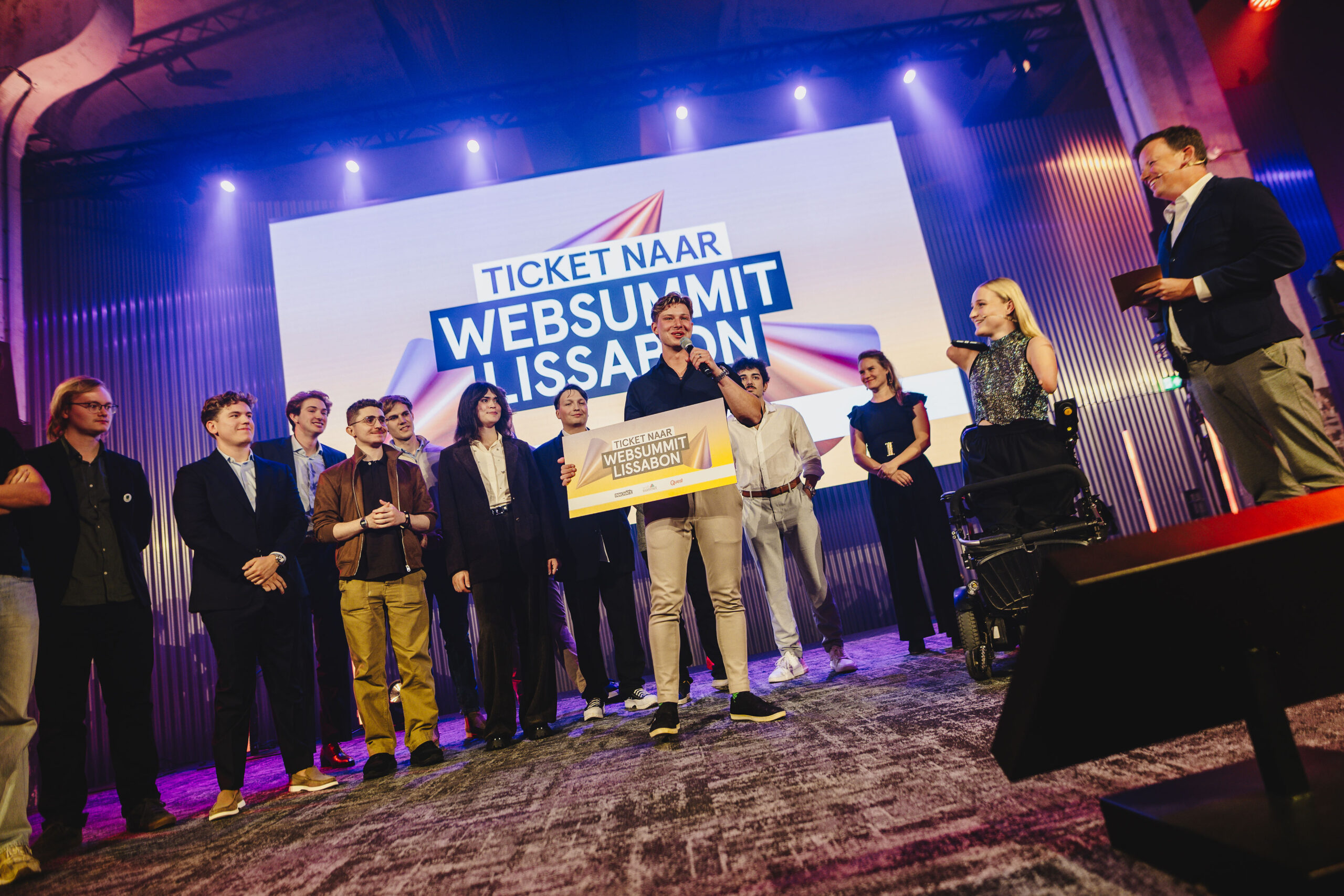 Bas Emaus (HAN University of Applied Sciences) en Ark Deliev i.s.m. Olivia Monné (Rijksuniversiteit Groningen) mogen zich de Innovatiefste Studenten van Nederland 2025 noemen. Bas won de volledig verzorgde NL-groeireis door Silicon Valley en Ark & Olivia wonnen de NL-groeireis naar startup festival Slush! in Helsinki. Ook wonnen zij de nieuwste ‘gouden’ Fairphone, gevuld met een lijst bijzondere contacten. Daarnaast was er dit jaar ook nog een runner-up prijs. Het ticket naar Websummit in Lissabon werd gewonnen door Richard Visser (HAN University of Applied Sciences).