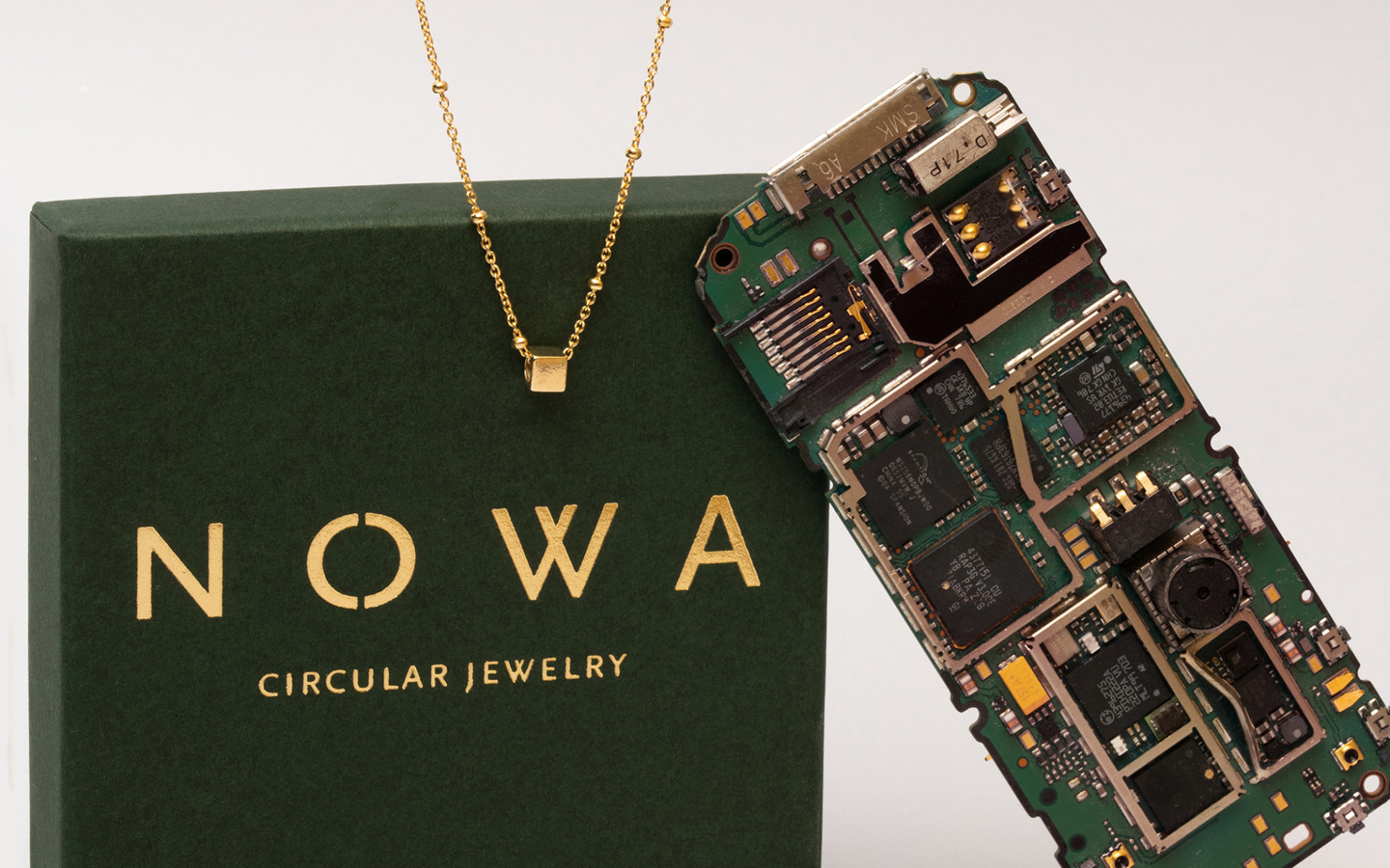 Josette de Vroeg (Founder Nowa): “Onze missie is de waarde van e-waste tastbaar maken. NoWa wint goud en zilver terug uit afgedankte telefoons en verwerkt e-waste tot tijdloze, prachtige sieraden. We richten ons sterk op lokale productie en sociale empowerment. Nowa streeft ernaar verder te gaan dan circulariteit; we werken actief aan het terugwinnen van de metalen die we voor onze sieraden gebruiken door oude, vergeten telefoons in te zamelen voor reparatie of recycling, en zo sociale banen te creëren. Joyce, Suzanne en ik zijn er ontzettend trots op dat ons werk wordt erkend als een voorbeeld van positieve verandering in onze branche en nog trotser om het podium te delen met andere inspirerende merken.”