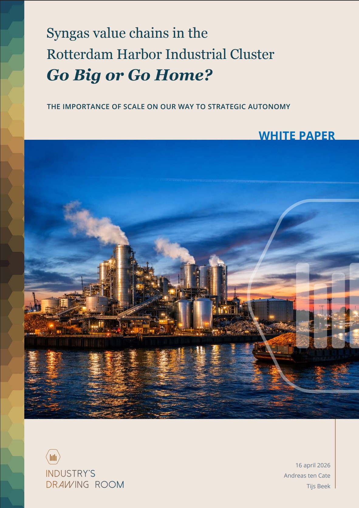 In het rapport van de Tekenkamer van de Industrie is onderzocht welke rol duurzaam syngas kan spelen in de haven van de toekomst. De conclusie is helder: zonder tijdig na te denken over nieuwe, duurzame grondstoffen verliest de Rotterdamse industrie haar kracht en concurrentiepositie. We zullen moeten ombouwen naar een circulair industrieel cluster. Een grootschalige duurzame syngasketen, met bijbehorende infrastructuur, kan hierin de sleutelrol spelen.