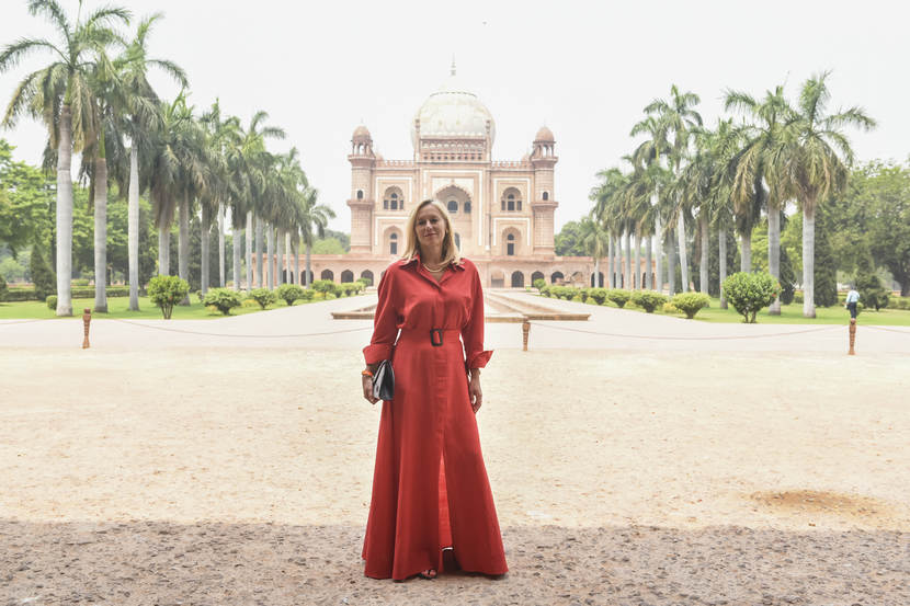 Noot: In 2018 droeg Minister Kaag al eens een circulaire jurk tijdens een handelsmissie naar India.