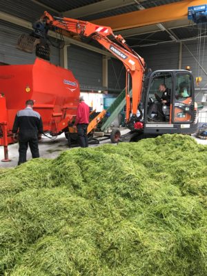 In de Grass2Grit-fabriek in Broek op Langedijk wordt op dit moment de eerste lading vers gras verwerkt tot grassap dooimiddel. Hillebrand Breuker, projectmanager provincie Noord- Holland: “Het is de eerste keer dat we grote hoeveelheden gras tot strooisap en vezels gaan verwerken.” De verwachting is dat er tussen de 6 en de 10 ton vers gras nodig is per km2 weg strooien.