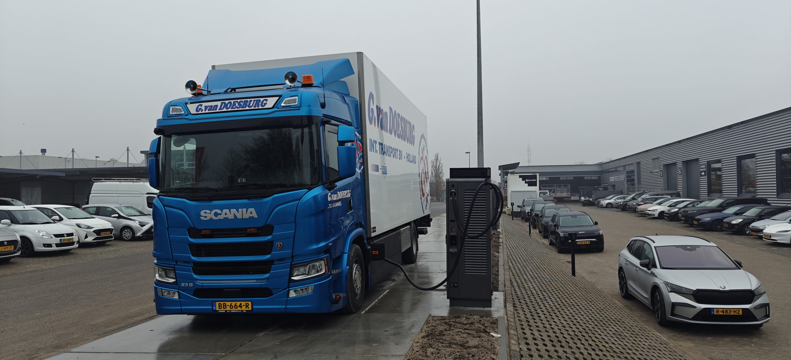 Gepubliceerd 12 februari 2026 op 2560 × 1165 in Eerste publieke laadplein voor elektrische vrachtwagens in de regio Purmerend geopend