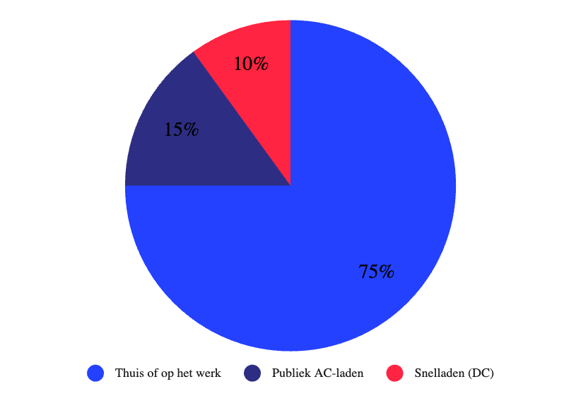 Toch hebben de hogere tarieven bij snelladers weinig invloed op de gemiddelde laadkosten. Uit data van Shuttel blijkt namelijk dat gemiddeld 75 procent van het laden thuis of op het werk plaatsvindt, waar de tarieven het laagst zijn. 15 procent van de laadtransacties vindt plaats bij publieke AC-laadpunten en 10 procent via snelladers langs de snelweg.