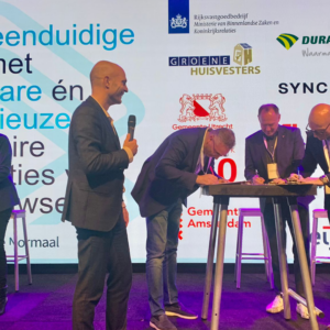 De City Deal Circulair en Conceptueel Bouwen, een samenwerkingsverband van overheden, bouwondernemingen, kennisinstellingen en koepelorganisaties, is in een klap meer dan twee keer zo groot geworden. Maar liefst 49 nieuwe deelnemers gaan met de ondertekening bijdragen aan de betaalbaarheid, de verduurzaming en de voortgang van de bouwagenda. Het bijtekenmoment vond plaats op 8 april tijdens de online Innovatie Expo. Met de nieuwe partners komt het totale aantal deelnemers op 87.