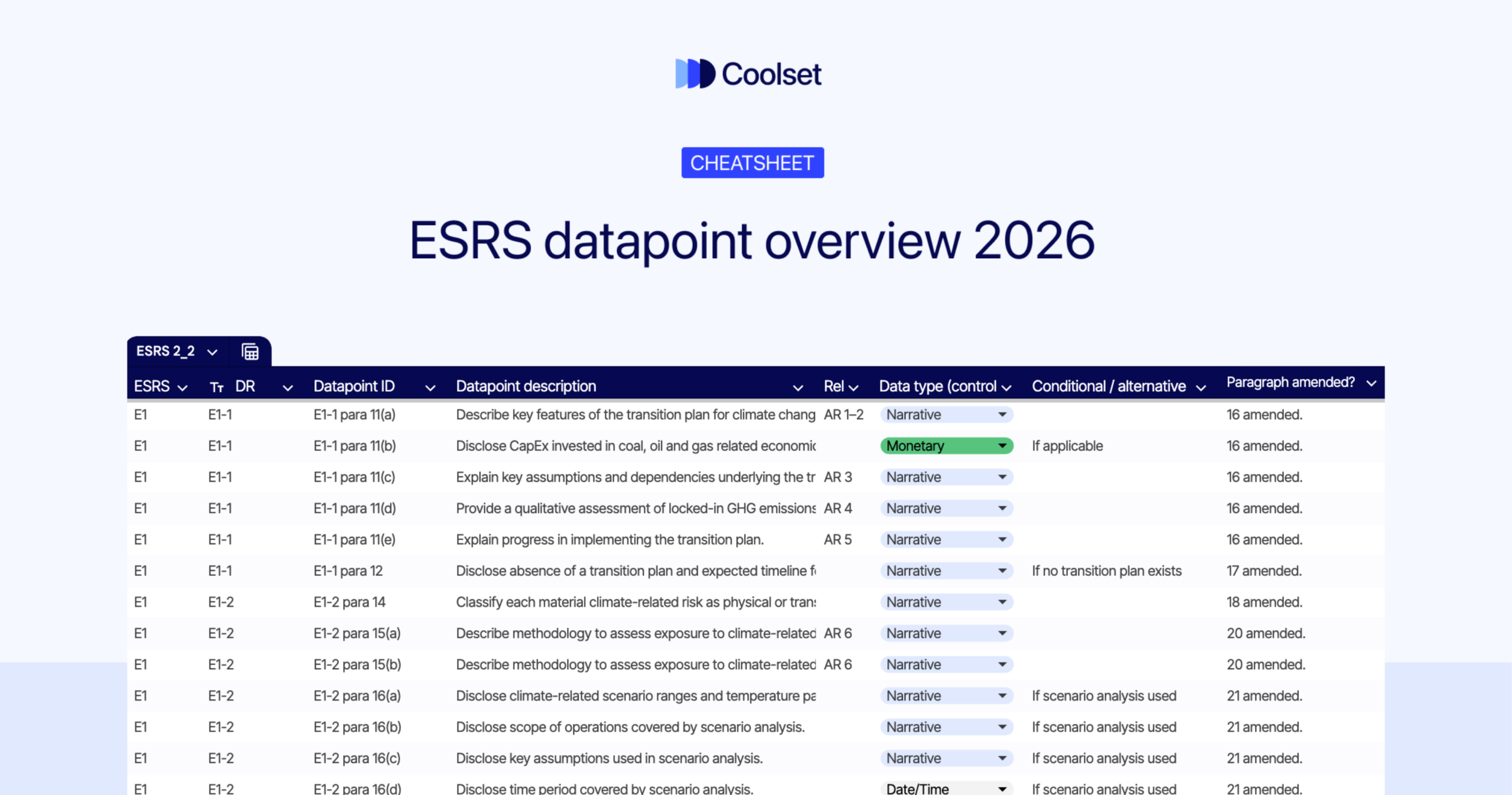 Krijg hier volledige toegang tot de ESRS-datapoint cheatsheet → https://www.coolset.com/