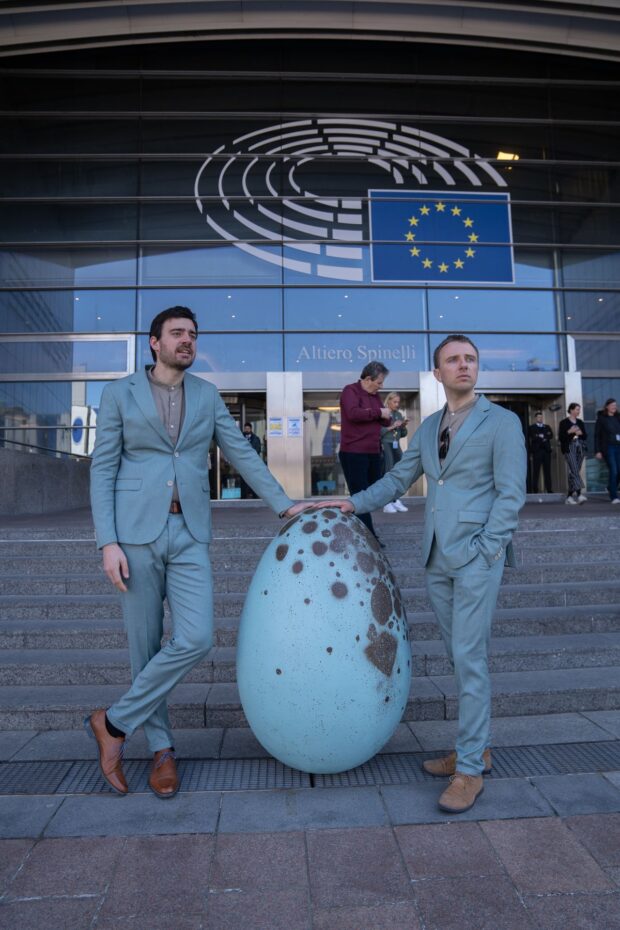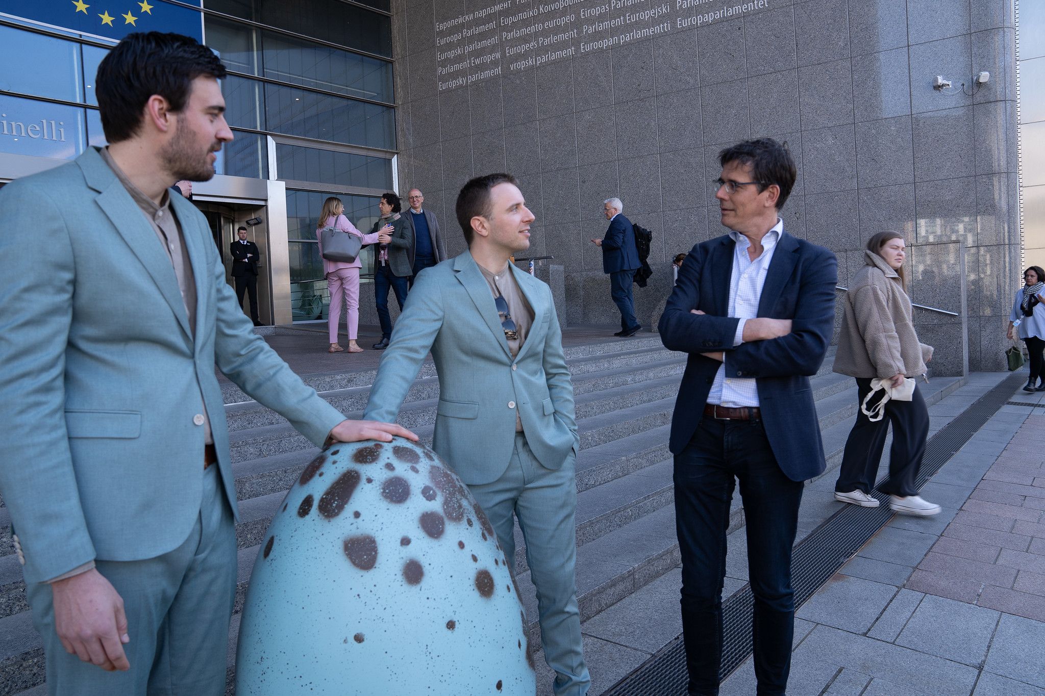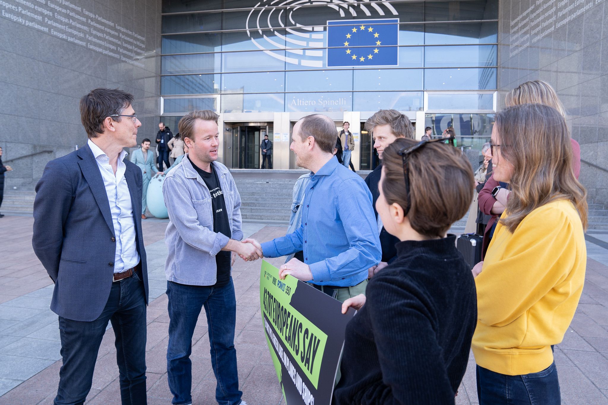Op donderdag 20 maart werd de petitie bij het Europees Parlement aangeboden aan onder andere Bas Eickhout, co-voorzitter van De Groenen/EVA en Gerben-Jan Gerbrandy, vice-voorzitter van Renew Europe. Vergezeld met een groot koekoeksei laten klimaatorganisaties Fossielvrij NL, 350.org, Opportunity Green, Protect Our Winters en Dryade zien wat de EU doet wanneer ze de deur openen naar lobbyisten: ze voeden de verkeerde jongen op en verwaarlozen hun eigen kinderen – échte klimaatoplossingen.