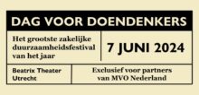 07/06/2024 @ 13:00 – 18:00 – Op vrijdag 7 juni 2024 tovert MVO Nederland het Beatrix Theater in Utrecht weer om tot hét grootste zakelijke duurzaamheidsfestival van het jaar. Dé plek om ondernemers te ontmoeten die net als jij willen bijdragen aan een duurzame economie. Laat je verrassen en inspireren door toonaangevende sprekers en keynotes, doe mee aan workshops en leer […]