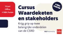 18/06/2024 @ 09:00 – 17:00 – Over deze cursus CSRD IN ONE DAY is een dagvullend evenement waarbij professionals met een achtergrond in financiën, risico, rapportage, juridisch en duurzaamheid basiskennis krijgen van de Europese standaard voor duurzaamheidsrapportage. CSRD IN ÉÉN DAG bevat videolessen, cursusmateriaal, cases en boeiende opdrachten. Voorbeelden zijn AkzoNobel, Schneider Electric, Philips, ABN AMRO en Tony’s Chocolonely. Voor wie is deze cursus […]