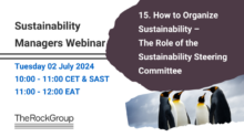 02/07/2024 @ 10:00 – 11:00 – We’re thrilled to announce our upcoming webinar: “How to Organize Sustainability – The Role of the Sustainability Steering Committee” In today’s fast-evolving landscape, sustainability isn’t just a buzzword – it’s a strategic imperative. Join us as we dive deep into the pivotal role of the Sustainability Steering Committee in driving organizational change and fostering a […]