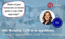 27/08/2024 @ 14:00 – 17:00 – CSRD-rapportage gaat verder dan alleen de eigen operaties. Ook de acties van jouw leveranciers en klanten gaan een belangrijke rol spelen in de duurzaamheidsrapportage. Hoe ga je hiermee om? Deze vraag vormt de basis tijdens de workshop op 27 augustus. Ben je er ook bij? De uitbreiding van het speelveld door ook de waardeketen mee […]