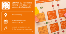 19/11/2024 @ 09:00 – 17:00 – Er komt veel regelgeving vanuit Europa die bedrijven en andere grote organisaties verplicht over duurzaamheid te rapporteren. Het gaat om een breed scala aan ecologische, maatschappelijke en bestuur (ESG-)indicatoren. Denk aan de SFDR, CSRD en EU Taxonomie. Maar wat betekent deze wet- en regelgeving nu concreet voor de bouw- en vastgoedsector? In deze training krijg […]
