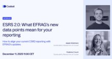 11/12/2025 @ 11:00 – 11:45 – Op donderdag 11 december om 11:00 uur organiseert Coolset een livesessie van 45 minuten over hoe je je huidige CSRD-rapportage kunt afstemmen op de updates van EFRAG van eind november. Met de publicatie van de definitieve ESRS-datapunten eind november gaat het landschap van duurzaamheidsrapportage een nieuwe fase in. Wat je leert: → Wat er is […]