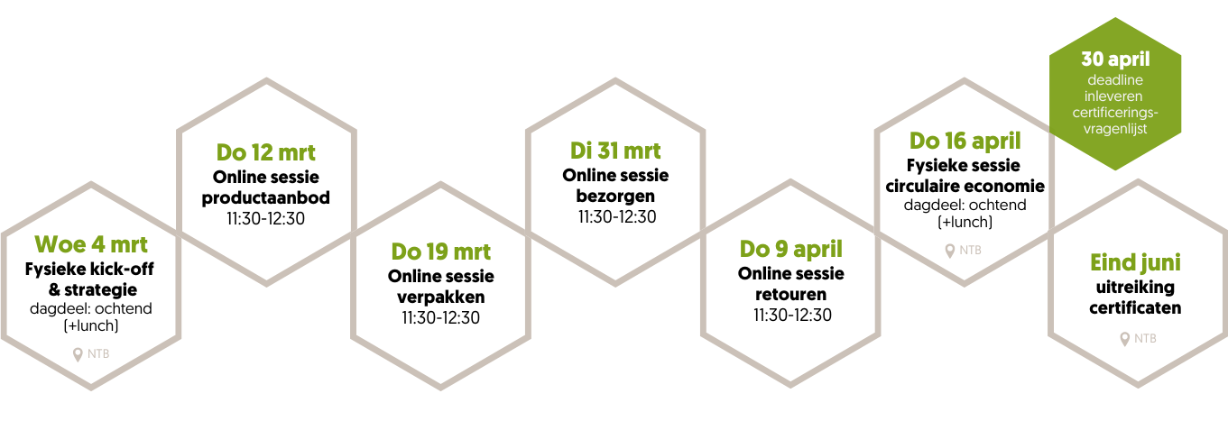 Voor webshops die stappen willen zetten op het gebied van duurzaamheid, bieden we een versneld programma aan. Het Acceleratieprogramma staat open voor leden van Thuiswinkel.org die non-foodproducten verkopen aan consumenten, zonder beperkingen op basis van bedrijfsgrootte. Het biedt ondersteuning die afgestemd is op de verschillende fases van waar jij als bedrijf bent in jouw duurzaamheidsreis.