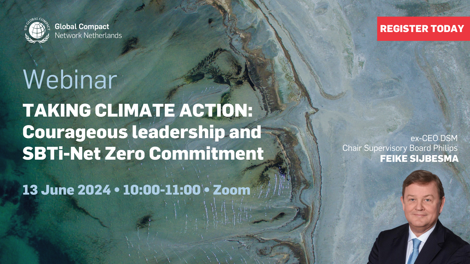 In de aanloop naar de Dag van de Duurzaamheid zal Feike Sijbesma (voormalig CEO DSM, voorzitter Koninklijke Philips, co-voorzitter WEF CEO Climate Leaders Alliance en co-voorzitter Global Center on Adaptation) een webinar leiden op 13 juni 2024,10:00 – 11:00 AM CET. Feike Sijbesma zal ingaan op het belang van klimaatactie, hoe SBTi hierbij kan helpen en hoe dit alles past bij goed leiderschap.