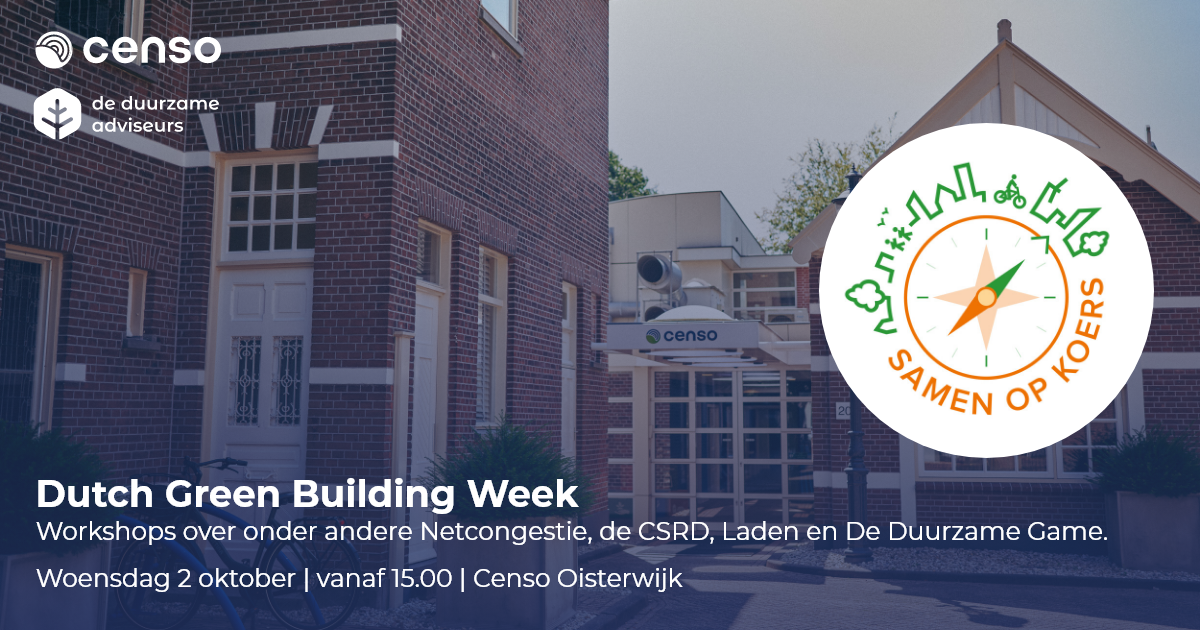 Op woensdag 2 oktober organiseert Censo / De Duurzame Adviseurs vier workshops over verschillende onderwerpen op het gebied van Duurzaamheid. Deze workshops maken deel uit van de DGBC-week, georganiseerd door Dutch Green Building Council.
