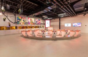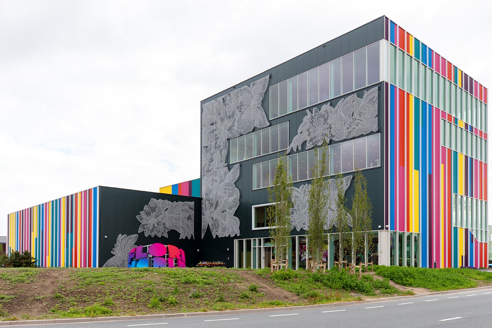 FloriWorld is de naam van de nieuwe toeristische attractie voor liefhebbers van bloemen en planten in bloemenstad Aalsmeer. Nederlands jongste recreatiebestemming, die hoopt op enkele honderdduizenden bezoekers per jaar, biedt een interactieve totaalbeleving. De bezoeker wordt ondergedompeld in een onvergetelijke ervaring, aldus FloriWorld. De inrichting is meer dan bijzonder. Vanzelfsprekend veel bloemen en planten – 5000 dagverse bloemen rijden dagelijks op rails door het gebouw – maar ook (bloemen- en planten-)kunst, fraaie foto’s en illustraties op enorme screens, en daarnaast tal van duurzame keuzes in een fris, organisch interieur met heel veel kleur. De vloeren van Forbo Flooring spelen een belangrijke rol in de verbinding van de verschillende ruimtes.
