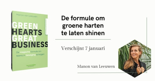 Voor de duidelijkheid, dit boek gaat niet over duurzaamheid. En ook niet over weerstand tegen verandering. Green hearts, great business gaat over emotioneel raken. Want alleen dan komen mensen in beweging en gaan er dingen veranderen. Manon sprak tientallen CSO’s, ESG-leads, MVO-managers en andere friskijkers en dwarsdenkers. Al noemt zij ze liever ‘duurzaamheidsstrijders’. Op basis van die gesprekken ontwikkelde ze de succesformule GHEART. Een praktisch stappenplan waarmee je zelfs de grootste dwarsligger enthousiast krijgt voor je plannen. En groene harten kunt laten shinen. Op naar Green Friday!