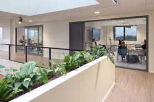 ‘Groen’ was ook een belangrijk uitgangspunt in het ontwerp. Daar waar het ging om duurzame, circulaire en zelfvoorzienende oplossingen (zoals in eigen energie bijvoorbeeld), maar ook letterlijk door het gebruik van planten en bomen die het pand ‘bevolken’; groen dat zich als een landschap door en over het gebouw uitstrekt. Daarnaast zijn er allerlei biodiversiteit bevorderende maatregelen geïmplementeerd. Denk aan kruiden, boomstronken, een takkenrail en vele andere nestmogelijkheden voor insecten, vogels en vleermuizen. Zelfs de verlichting is diervriendelijk. Deze stadsnatuur prikkelt niet alleen de zintuigen, maar heeft ook een educatieve waarde en draagt volgens BDG Architecten verder bij aan betere leer- werkprestaties.