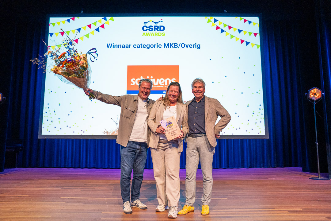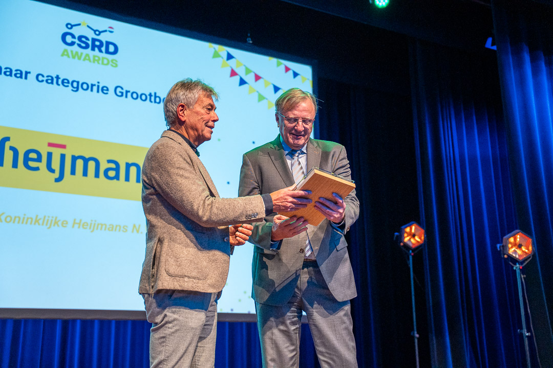 Tijdens de jaarlijkse uitreiking van de CSRD Awards heeft de jury Koninklijke Heijmans N.V. uitgeroepen tot winnaar in de categorie grootbedrijf. In de categorie MKB/Overig gaat de prijs opnieuw naar Schijvens Corporate Fashion. De prijzen worden toegekend aan organisaties die vooroplopen in transparante, gestructureerde en toekomstgerichte duurzaamheidsrapportage. Juryvoorzitter Dick de Waard reikte de bokalen uit aan Ton Hillen (CEO Koninklijke Heijmans) en Shirley Schijvens (eigenaar) en Jaap Rijnsdorp (CEO) van Schijvens.