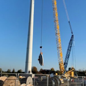 In Flevoland wordt hard gewerkt aan het grootste windproject van Nederland: Windplan Groen. Maar liefst 90 windmolens worden hier gebouwd. Om te voorkomen dat het jaren duurt voordat alle windmolens aangesloten kunnen worden op het hoofdnet heeft Pure Energie gekozen voor een bijzondere oplossing: een eigen gesloten distributiesysteem (GDS). Het stroomnet onder het projectgebied met aan het eind één centrale aansluiting op het stroomnet.