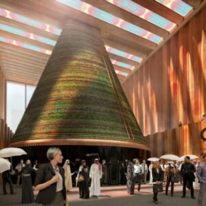 ‘Het Nederlands Paviljoen is een enorm Circulair project dat laat zien dat circulair ontwerpen kan, evenals circulair bouwen en constructie- en recycling planning voordat een bouwconstructie wordt gemaakt! Laat dit een voorbeeld zijn voor de bouw- en constructiesector over de hele wereld! Ons GSES System platform is voor alle belanghebbenden, landen, organisaties, producten en toeleveringsketens. Naast het uitreiken van de certificaten aan het Nederlands Landenpaviljoen hebben we tijdens de handels receptie op 2 november ook het GSES System certificaat uitgereikt aan Hoogendoorn Growth Management. Een bedrijf in tuinbouwautomatisering, dat niet alleen praat over duurzaamheid, maar dit ook in de MENA-regio in de praktijk brengt. Koppert Biological Systems, ABN AMRO Bank, Univé Verzekeringen etc gebruiken ook het GSES System en zijn geverifieerd. Er is wereldwijd een enorm potentieel voor duurzame groei en samen met de Expo-organisatie laten we zien dat het dienovereenkomstig kan worden gemeten en geverifieerd. Zo zijn we een voorbeeld voor de rest van de wereld.’ – Kelly Ruigrok, CEO GSES System, Data for Good en het Nationaal Duurzaamheid Instituut uit Nederland.