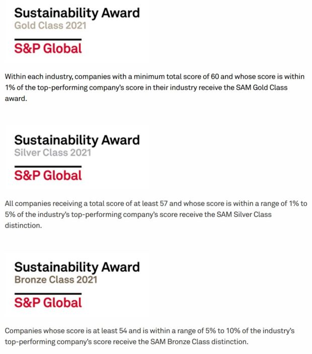 Het Sustainability Yearbook beloont bedrijven die superieure duurzaamheidsprestaties in hun branche hebben aangetoond met onderscheidingen in de klasse Goud, Zilver en Brons. Meer dan 7.000 bedrijven die zijn beoordeeld in de Corporate Sustainability Assessment (CSA) van 2020 kwamen in aanmerking voor The Sustainability Yearbook. Slechts 631 bedrijven met de beste ESG-scores haalden het Yearbook. Unilever behaalde een gouden medaille. Ahold Delhaize, KPN en Signify kregen zilver en ABN Amro, ASML, ASR Nederland, NN, Philips en PostNL brons. SBM Offshore en Heineken werden aangemerkt als ‘Industry Mover’.