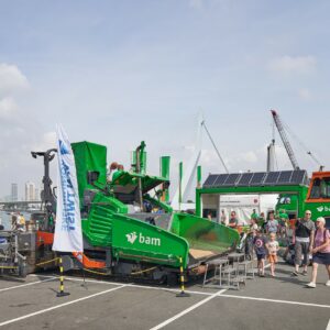 Het is bouwbedrijf BAM gelukt om een diesel aangedreven asfaltspreidmachine om te bouwen naar een machine met een waterstofverbrandingsmotor. Dit is voor het eerst dat een dergelijke transitie in de praktijk is toegepast. In 2030 moet de bouwplaats zero-emissie zijn. Op dit moment voldoet ruim 10 procent van de bouwprojecten aan die norm. Met nog zeven jaar te gaan moet deze transitie dus nog op stoom komen.