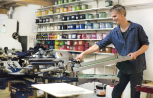 Het GOTS-certificaat is een krachtig keurmerk dat de duurzaamheid van biologisch katoen waarborgt door de gehele keten. Het zeefdrukatelier aan het IJ op de industriële NDSM-werf in Amsterdam is als enige textieldrukkerij in Nederland gecertificeerd met het keurmerk, waardoor het katoen ook ná het bedrukken nog steeds gecertificeerd blijft, en dat is uniek. Het GOTS-certificaat ontvang je namelijk niet zomaar: de milieueisen zijn streng, en het werkt als een ketting die niet onderbroken mag worden. Zo moet de katoenboer GOTS-gecertificeerd zijn, net als de ververij van het katoen, het naaiatelier en uiteindelijk het zeefdrukatelier. Zodra de ketting onderbroken wordt, vervalt het keurmerk.