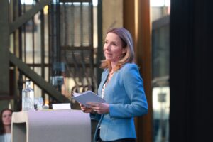 Minister Stientje van Veldhoven (Klimaat en Groene Groei) ging tijdens het congres met ondernemers in gesprek over de concrete voorstellen uit het bedrijfsleven, concrete handelingsperspectieven voor de systeemverandering die het rapport bepleit.