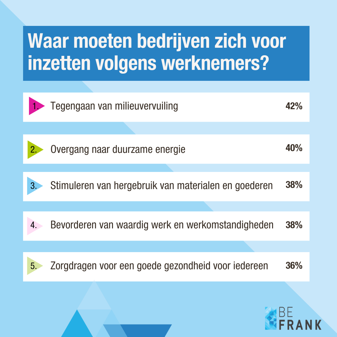 Werknemers vinden dat bedrijven zich vooral moeten inzetten voor: