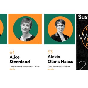 Van Nederlandse bedrijven staan ook Alex Holt (CSO bij Ahold Delhaize, plaats 220) en Alice K. Steenland (Senior Sustainability Executive & Board Member bij Signify, plaats 164) in de lijst.