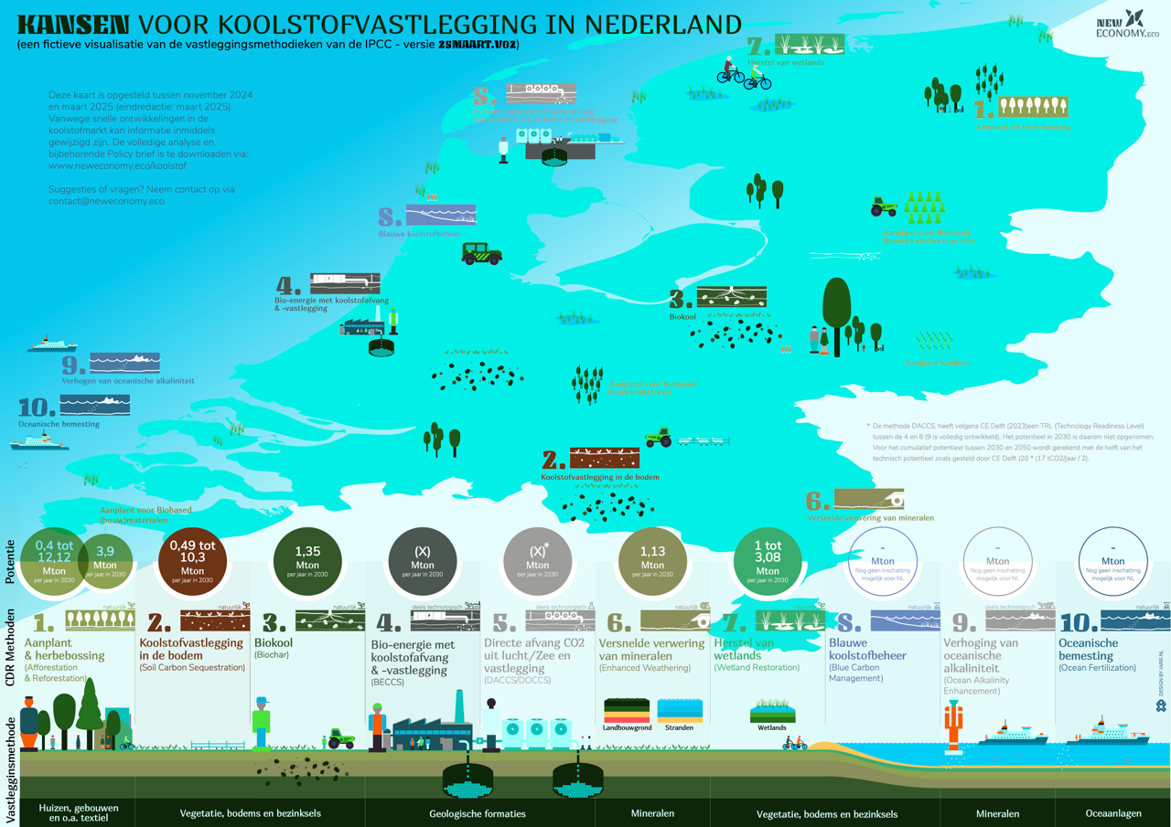 Intussen blijft van groot belang dat overheden en andere organisaties blijven inzetten op emissiereductie, aangezien koolstofvastlegging, in welke vorm dan ook, alleen effect heeft wanneer Nederland ook structureel minder CO2 gaat uitstoten.”